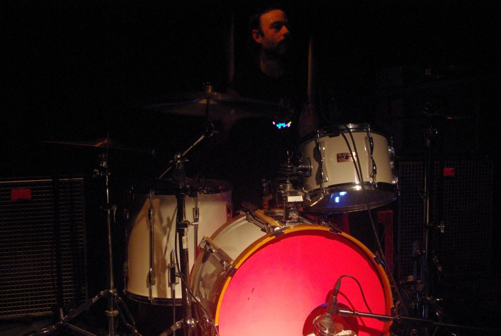 La soirée a commencé par deux sets de bruit à base d’électro (j’ai retenu aucun nom mais je mets le lien vers la page de la soirée), façon les oreilles collées à un réacteur d’avion. J’ai été assez peu surpris, je trouve cette musique pas extrêmement évocatrice et assez linéaire mais j’aime bien la puissance qui s’en dégage ainsi que le « grain ». En plus, y’avait un joli fond visuel pour le premier set. Troisième set dans le même style, avec un gars à la voix, façon râle d’agonisant. D’ailleurs il a fait mine de se pendre tout le concert et est allé s’affaler sur le sol du bar à la fin. Performance, performance…
